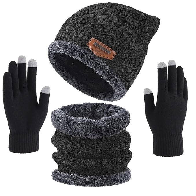 It has 1 Winter warm knitted woolen cap with neck warmer Plus one cotton glove set for extra care in winter's. This 3-in-1 Winter hat scarf and gloves set, stay warm all the time, great for outdoor activities and daily warmer. Best gift for your parents, friends, and yourself when the cold weather coming